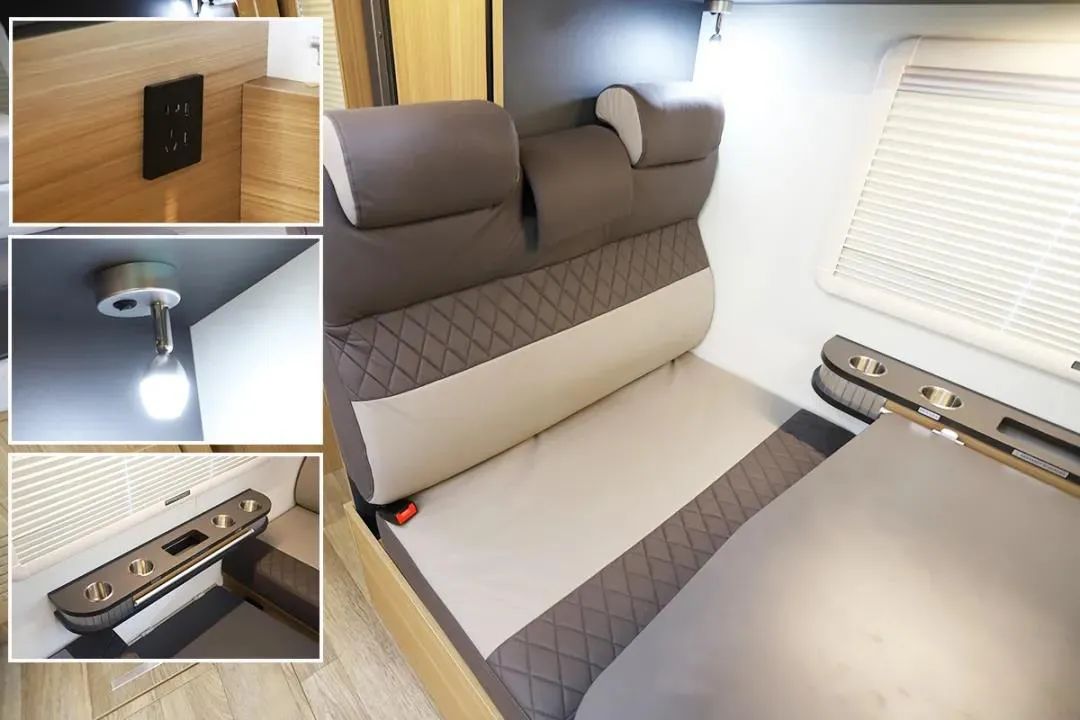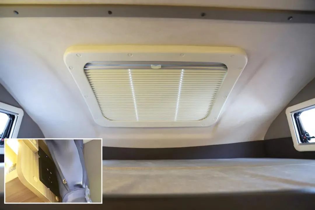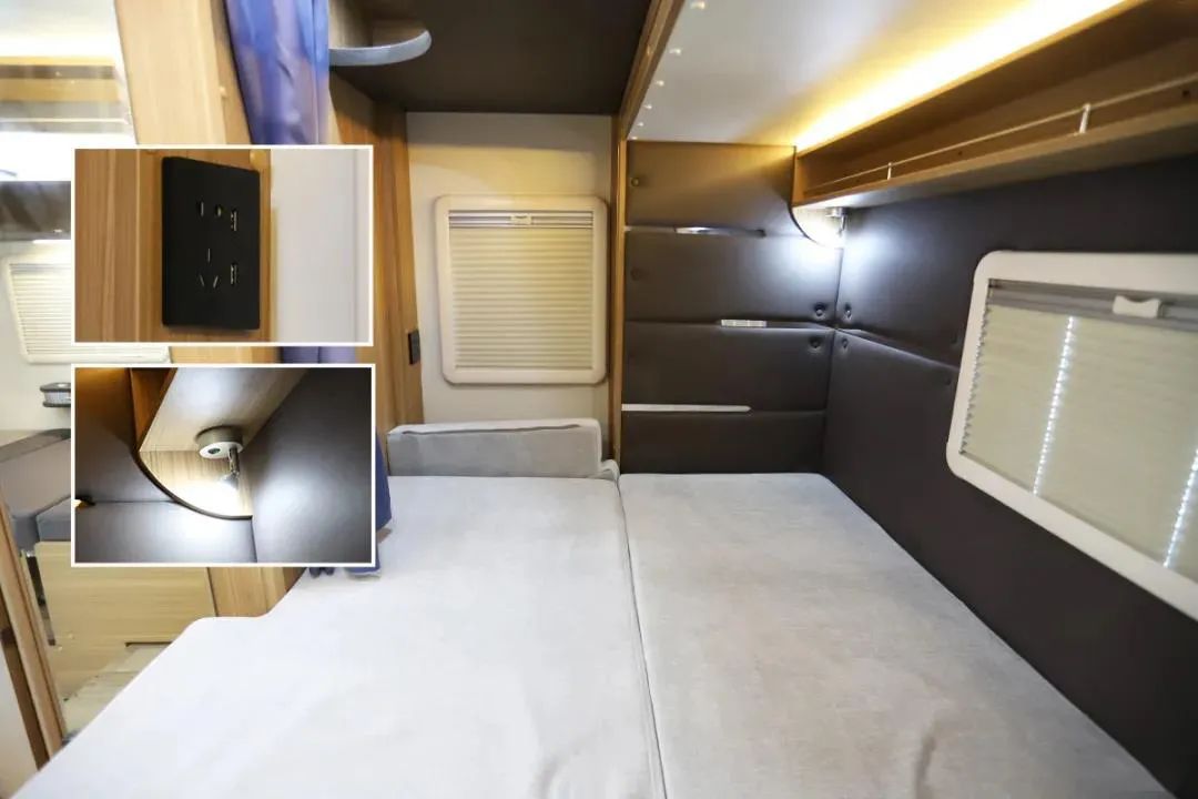 配置方面,額頭床配備頂窗、側窗、床頭位置的充電接口等。