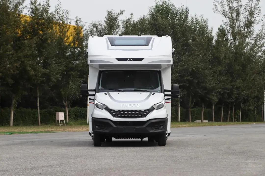云游雙拓定義大額頭C型房車(chē),標志性的玻璃鋼前大額頭造型、曲型天窗是云游標志性特征。不過(guò)外觀(guān)的變化與國產(chǎn)底盤(pán)版本相差確實(shí)不大,主要區別則體現在車(chē)身拉花上,相對來(lái)說(shuō)實(shí)拍車(chē)的拉花更顯簡(jiǎn)約大氣,突出了進(jìn)口底盤(pán)的高端屬性。