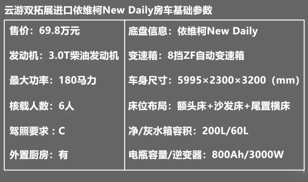 在車(chē)身尺寸方面,云游雙拓的長(cháng)/寬/高分別為5995×2300×3200(mm),與國產(chǎn)底盤(pán)完全相同。整車(chē)輕量化處理的相當不錯,整備重量可以維持在4噸以下,相比市面上大多數雙拓展房車(chē)來(lái)說(shuō)云游雙拓值得稱(chēng)贊。