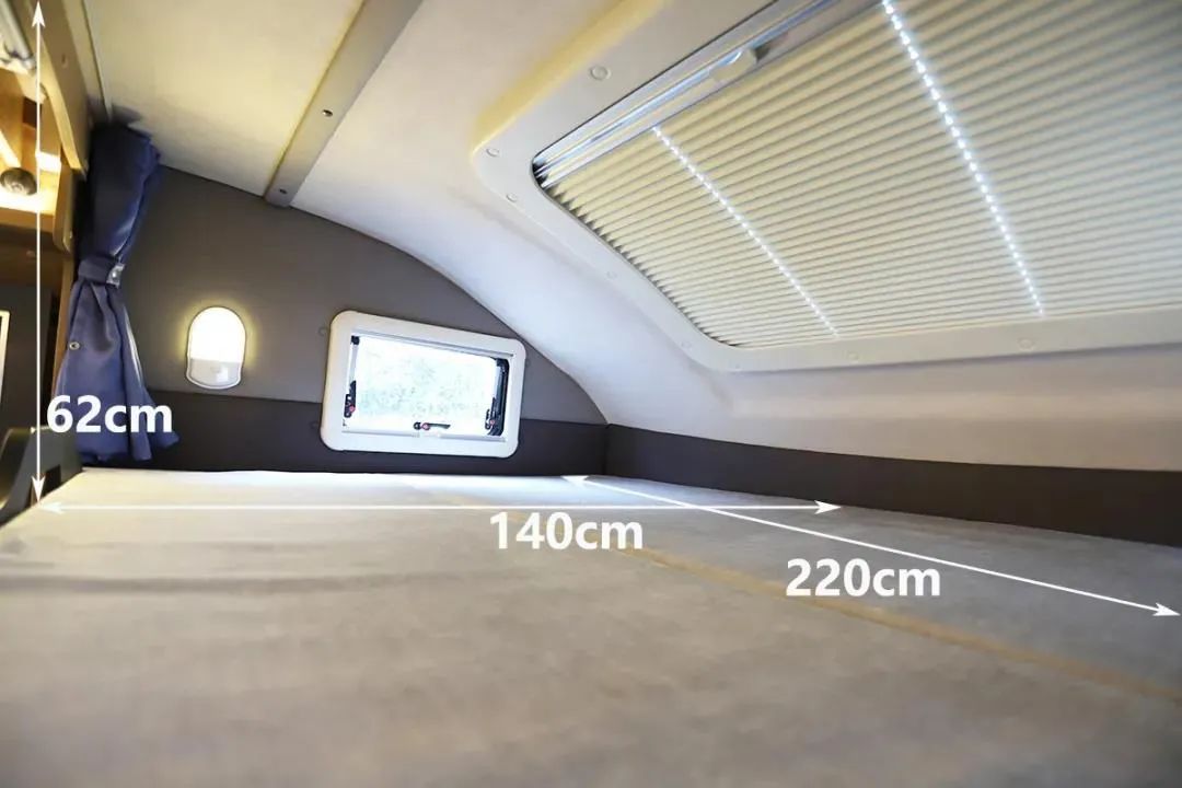 最后我們來(lái)看看后置橫床區域,經(jīng)過(guò)實(shí)測床鋪尺寸可以達到220x140(cm),拓展艙可延伸約60cm寬度。